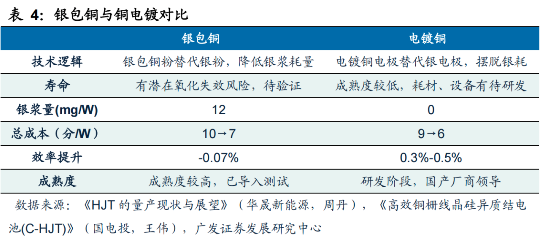 随着银包铜寿命实验结果和浆料国产化推进,几年内是理想的银浆降本方案。电镀铜效率高,无寿命风险,随着设备和工艺成熟,替代银包铜,成为最终方案。