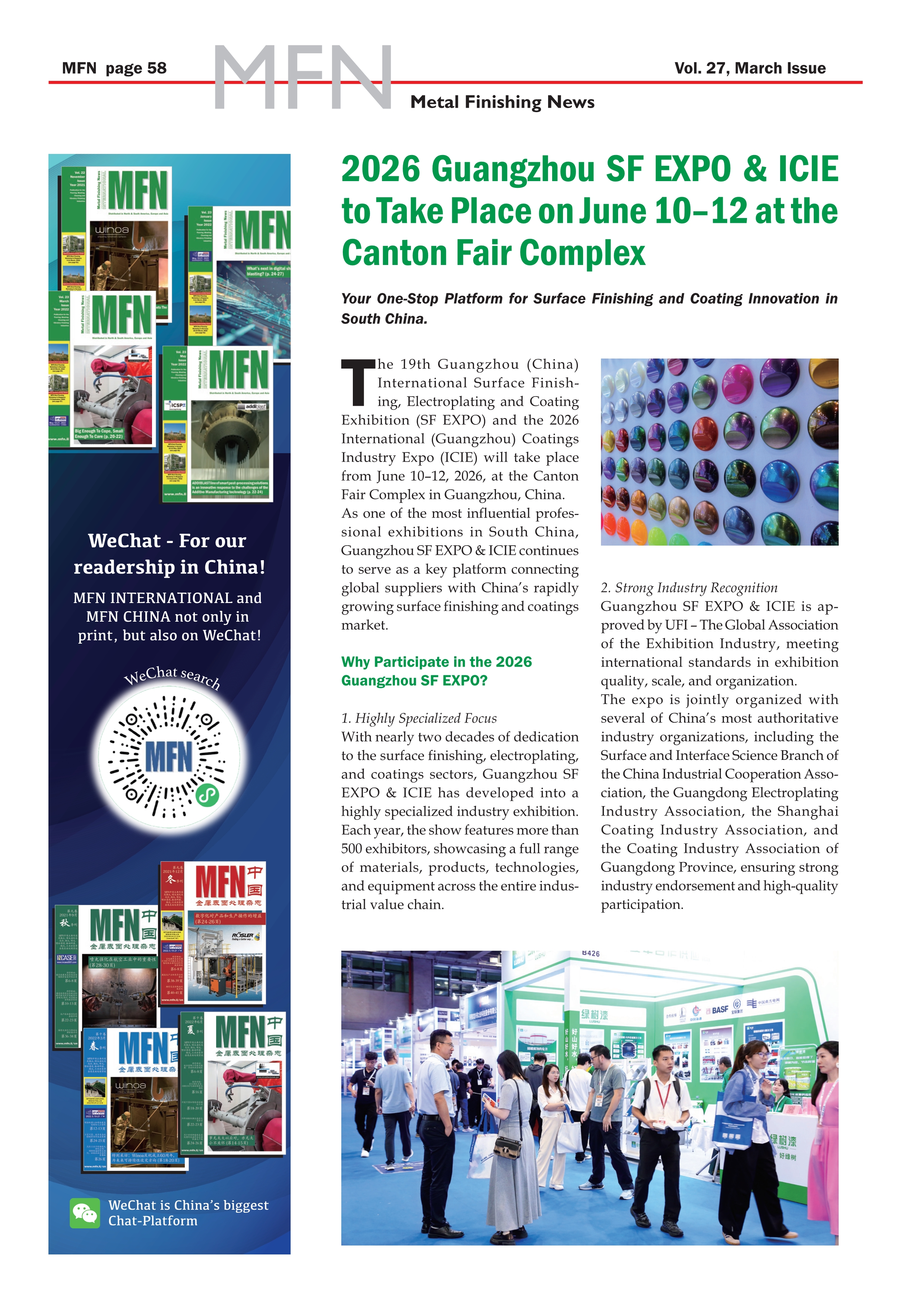 MFN国际版三月刊已上传第19届国际(广州)表面处理 电镀 涂装展览会和 2026 国际(广州)涂料工业展览会展会新闻: