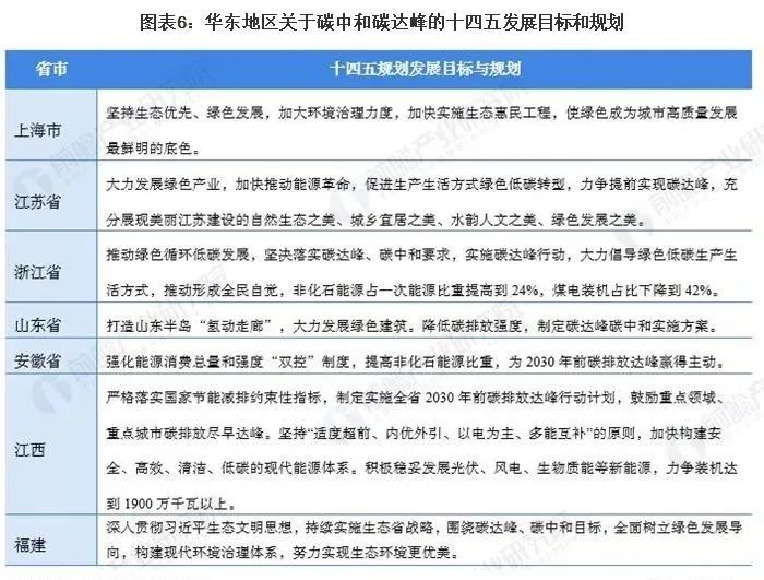 为了迎合国家在2030年实现碳达峰,2060年实现碳中和的目标,在华东地区各省份的十四五规划目标中主要是加快新能源对传统石化能源的结构替代,提高非化石能源比重,以山东为例,其十四五目标是打造山东半岛“氢动走廊”,加快氢能源的发展。