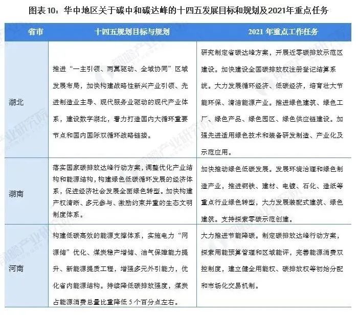 为了落实碳达峰和碳中和,华中地区各省在政策行动上积极落实国家碳排放达峰行动方案,调整优化产业结构和能源结构。