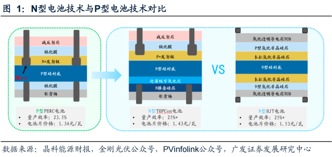 光伏技术持续迭代升级,随着光伏装机量的上升,“去银化”急迫性显著增强。2017-2019年,P型PERC电池逐步取代了铝背场BSF电池,“五三一”新政下,产业链降本加速,度电成本打平火电,光伏从此从周期性行业迈向成长性行业。21年以来,随着P型电池逐步接近其转换效率,行业开始将注意力转向N型电池技术。