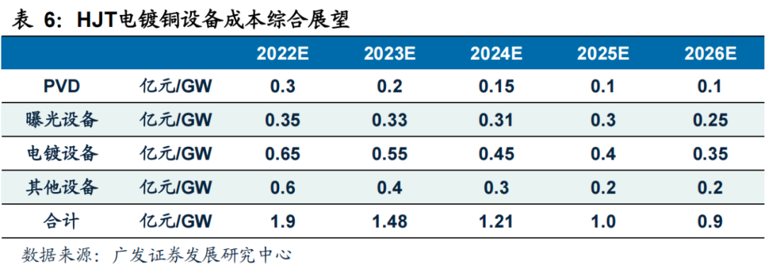 设备方面,目前单GW电镀铜设备价值量近两亿,采用电镀铜的HJT整线成本将达到6亿元/GW,设备降本空间很大,目标导入量产时电镀铜设备降到1亿/GW,整线4亿元/GW。