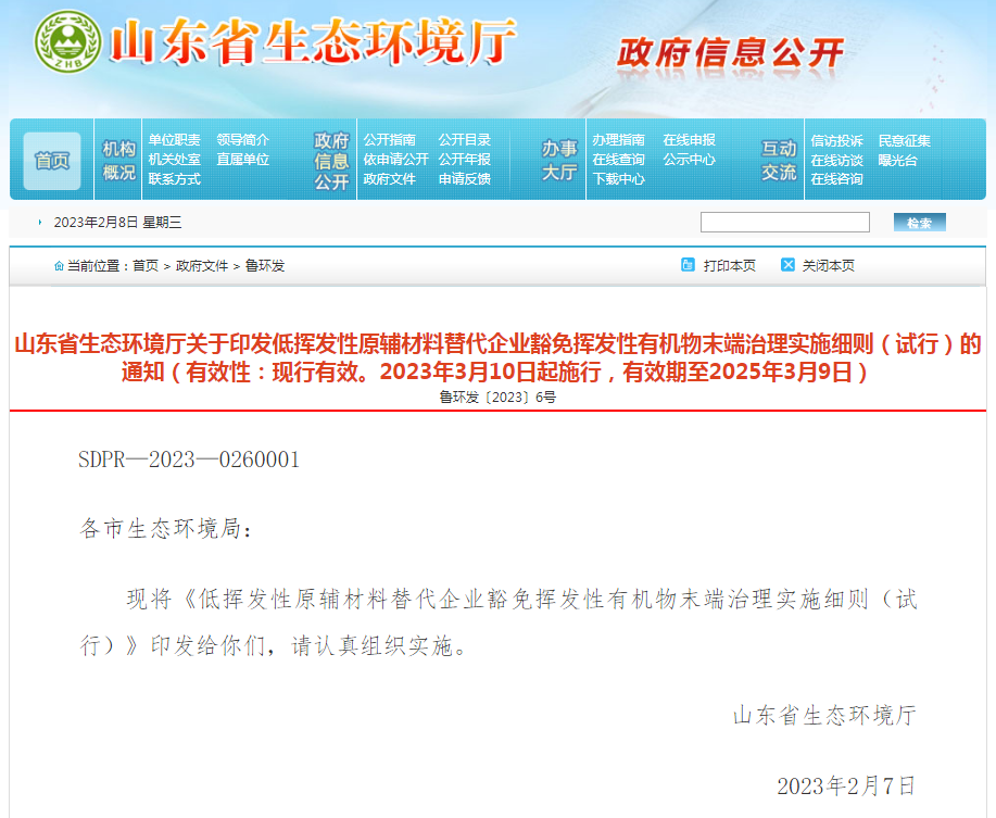 近日,山东省生态环境厅印发了《低挥发性原辅材料替代企业豁免挥发性有机物末端治理实施细则(试行)》(以下简称《实施细则》),现将主要内容解读如下: